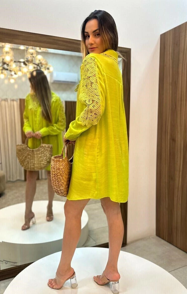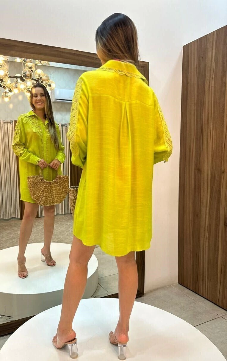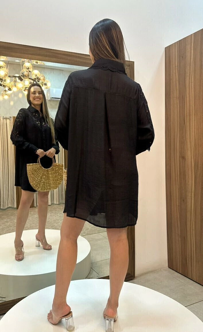 saída de praia CHEMISE DUDA 30% algodão 70% poliéster com detalhes em renda Ref: 8807