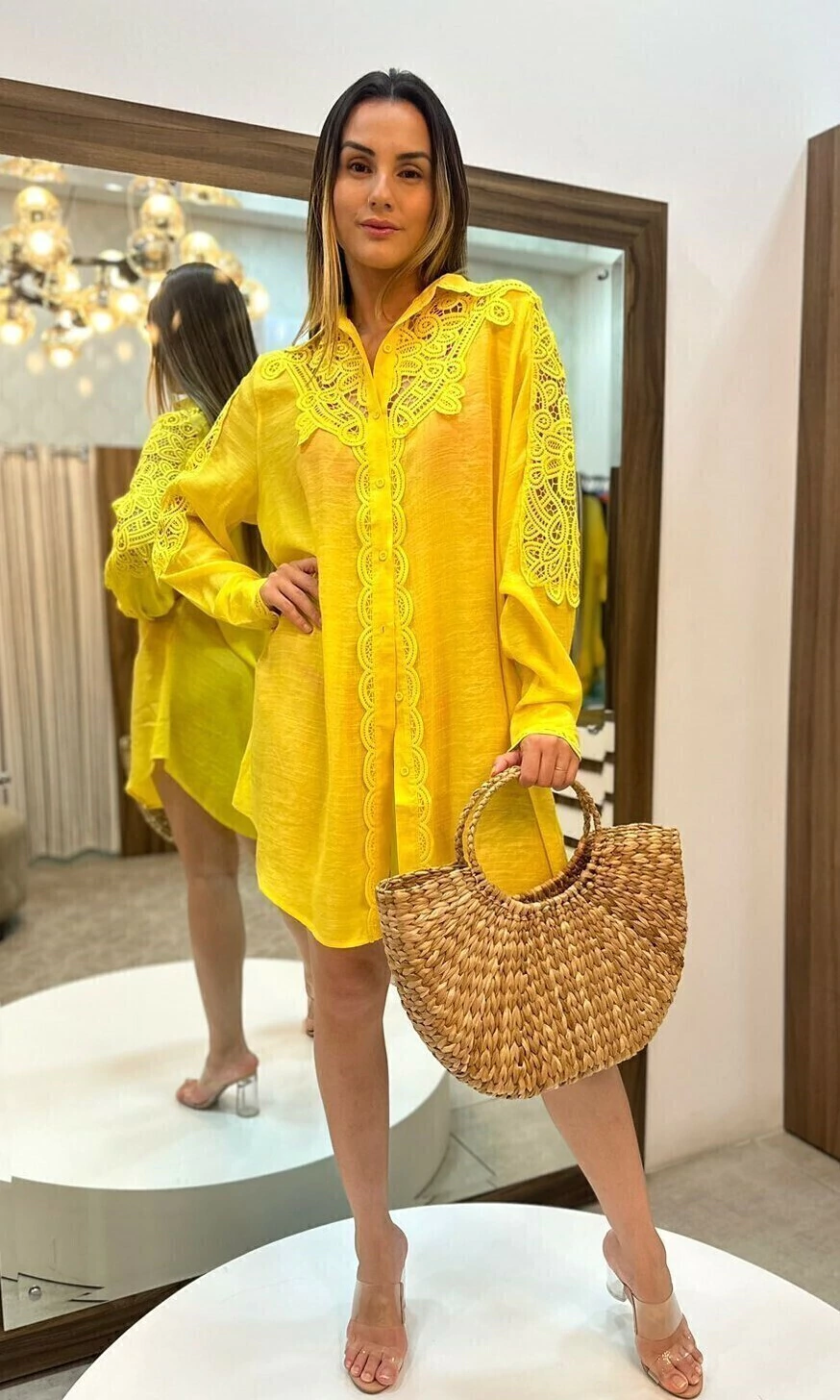 A saída de praia CHEMISE DUDA é a escolha perfeita para compor seu look durante e pós-praia com estilo e elegância.com detalhes de renda na manga e aplicação de renda frontral, essa chemise oferece um visual elegante e muito sofisticado, para passeio beira-mar , uma peça que proporciona conforto e confiança, além de ser super verssátil.